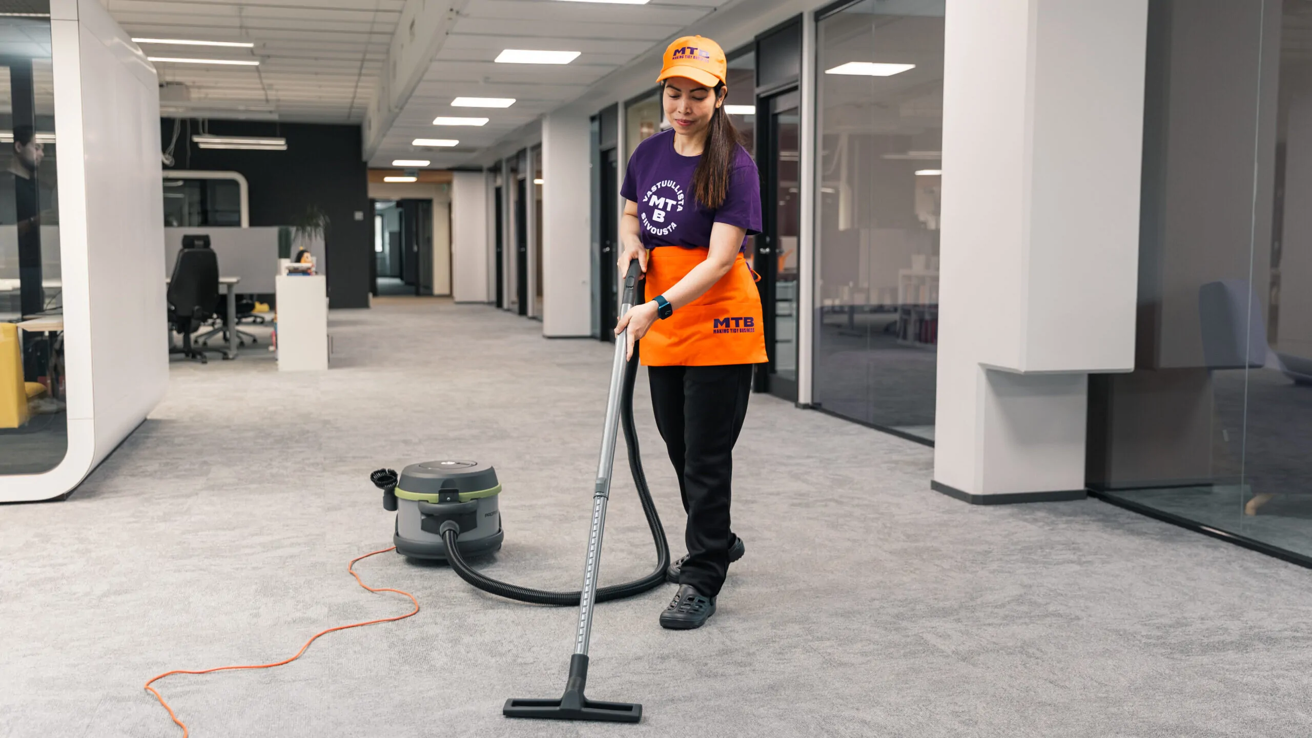 Quality office cleaning promotes staff well-being and reduces the amount of absences due to sickness. Our cleaning complies with the hygiene practices of the INSTA 800 quality standard. All our cleaners are trained at the MTB Academy™ and then undergo further training for their assigned sites. In addition to the designated cleaner, a deputy cleaner is also trained in the event of illness.